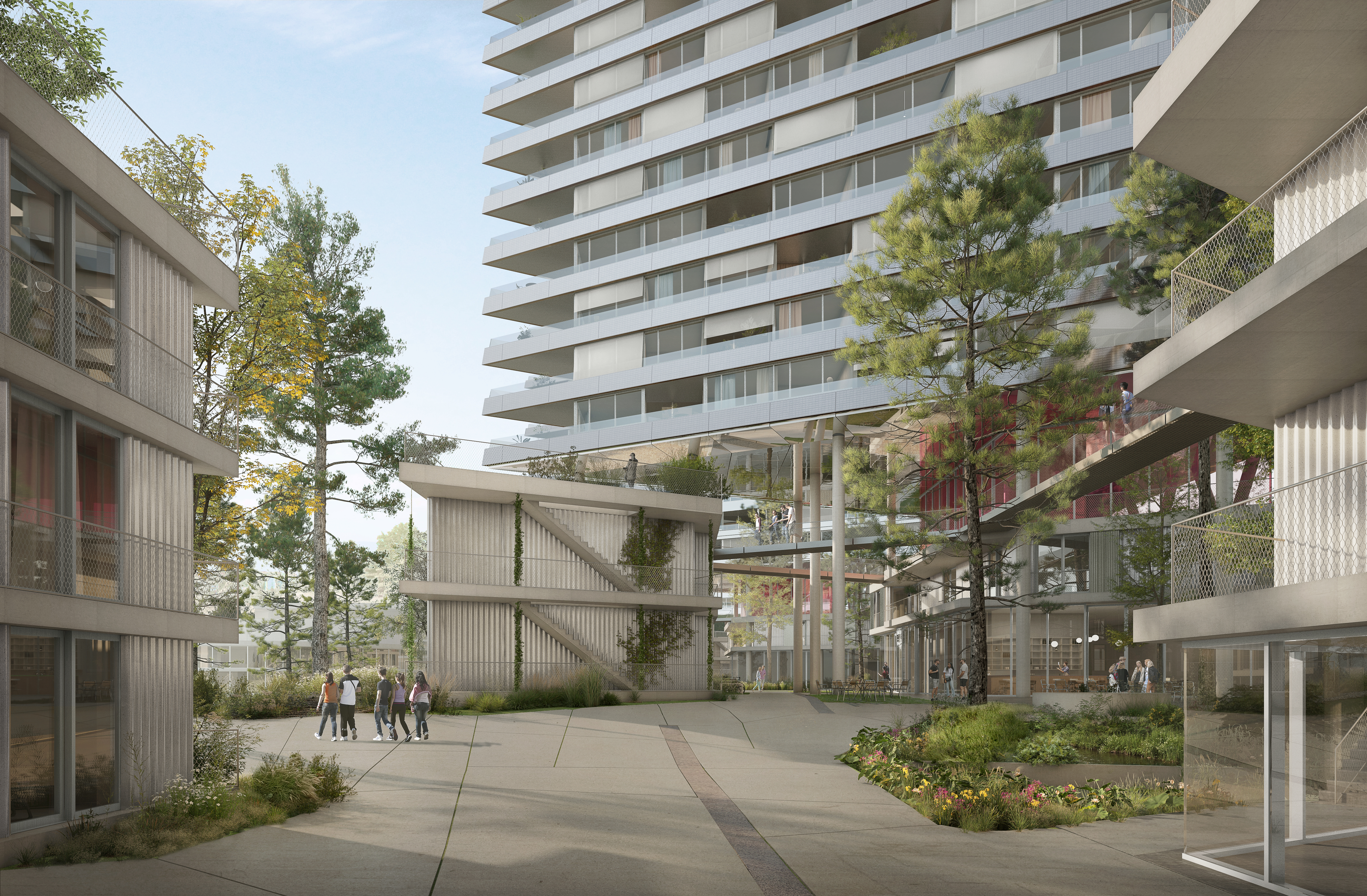 Des logements à loyer libre, des commerces et des services de proximité complèteront l’offre. Au total, environ 1'800 personnes résideront aux Hauts de Dorigny.