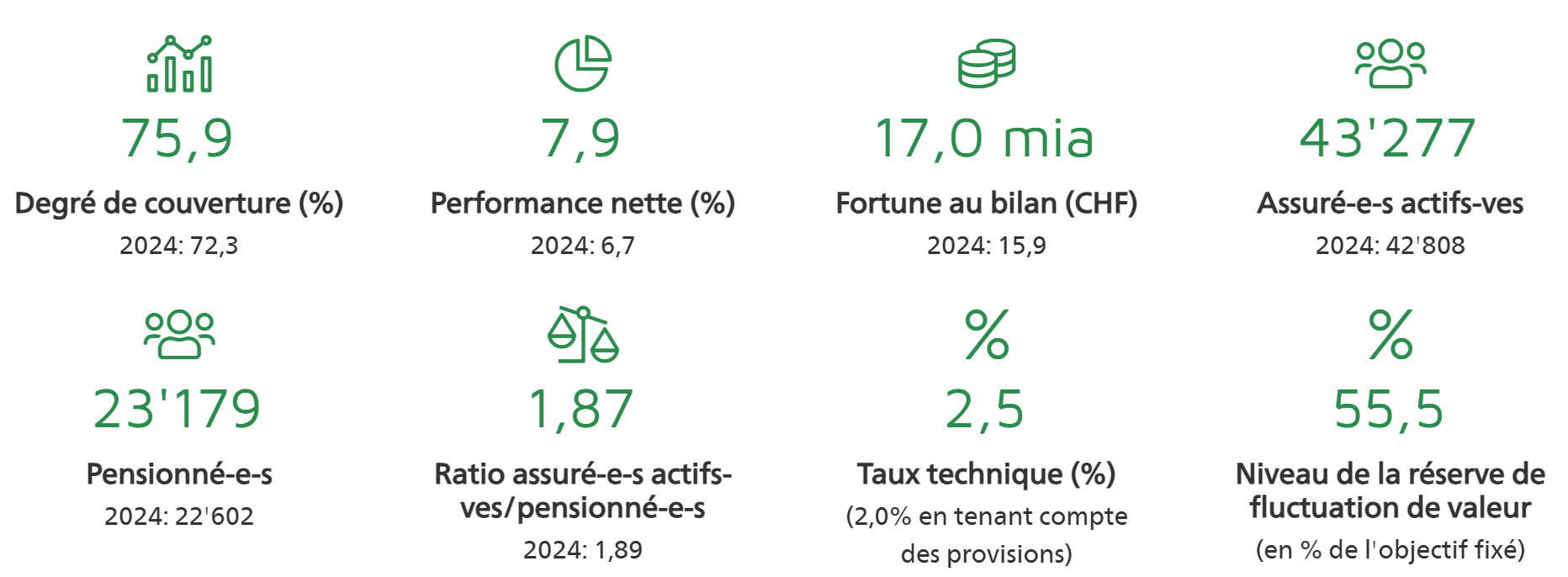 Les bons résultats de la gestion des placements de la CPEV en 2025 s’inscrivent dans la ligne favorable dessinée en 2023 et en 2024. A la fin de l'exercice, la Caisse enregistre une performance de 7,9% (2024 : 6,7%) et une fortune au bilan de CHF 17 milliards. Les résultats de la Caisse pour l’année écoulée sont présentés dans le rapport annuel 2025 disponible dès aujourd’hui sur ce site.